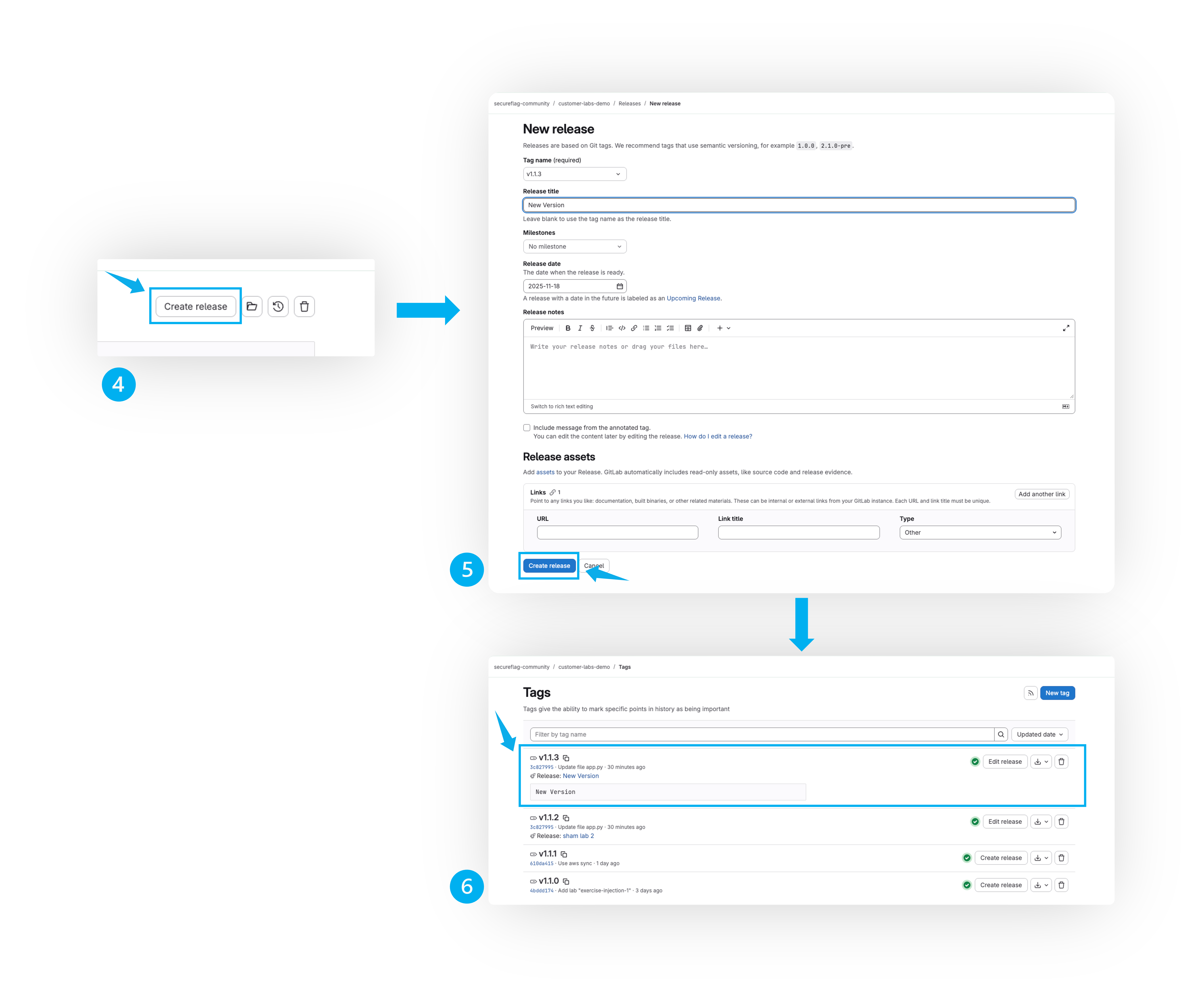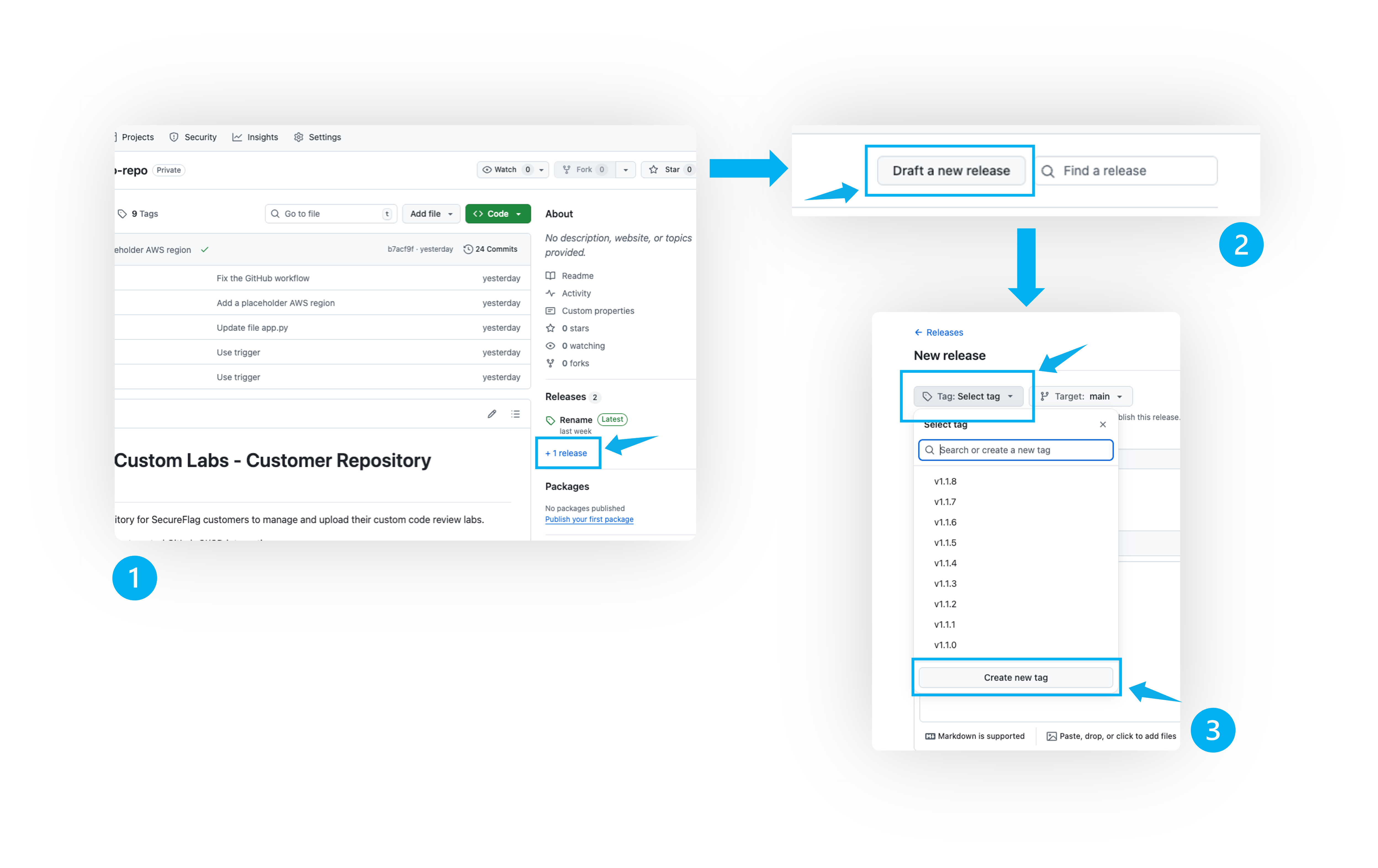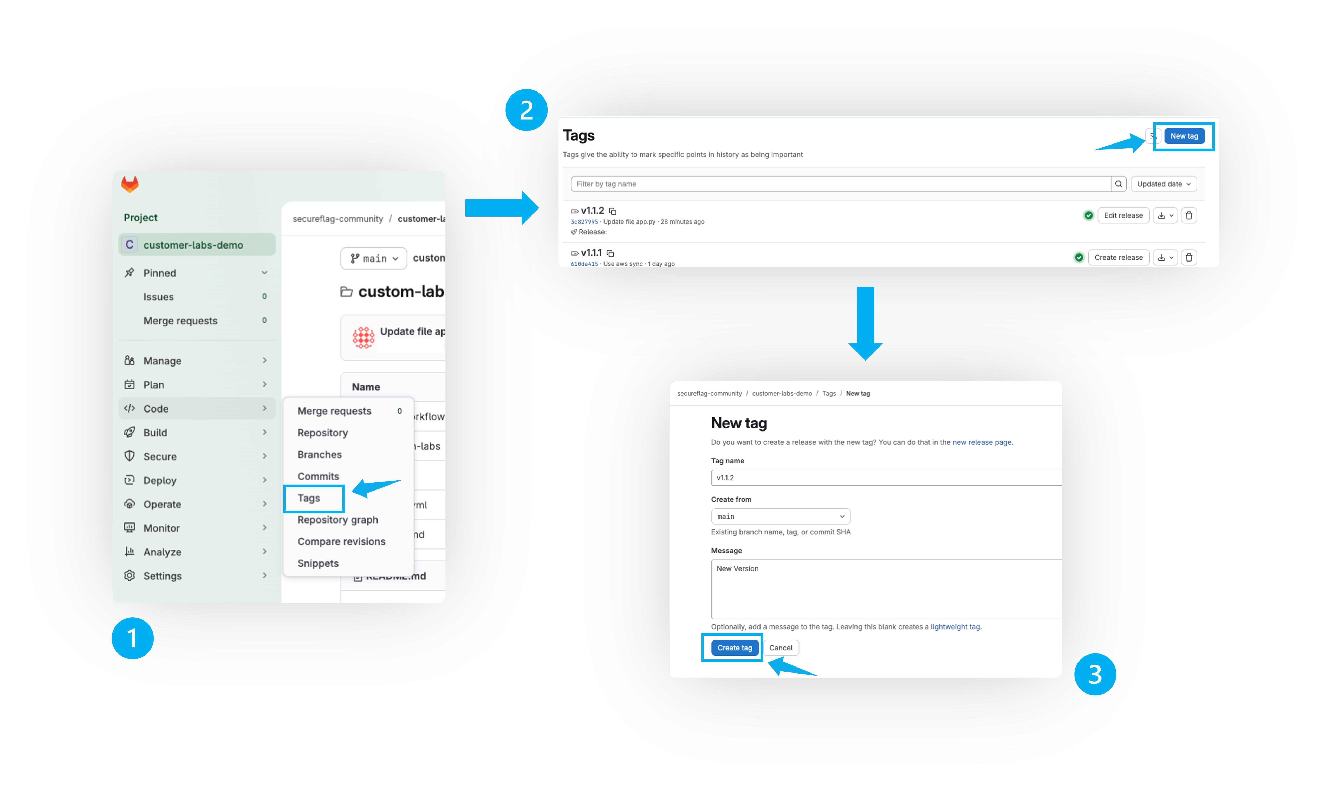 - After your code is ready, simply tag your repository to automatically upload your labs to SecureFlag.