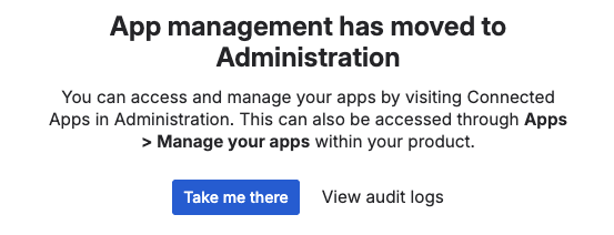 In Manage apps, you may see a notification stating that app management has moved to Administration. Click Take me there to continue.