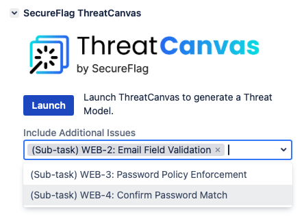 On an issue describing a feature or change, find SecureFlag ThreatCanvas on the right hand side and expand it. Wait for the Launch button to appear, then just press it to get your threat model!