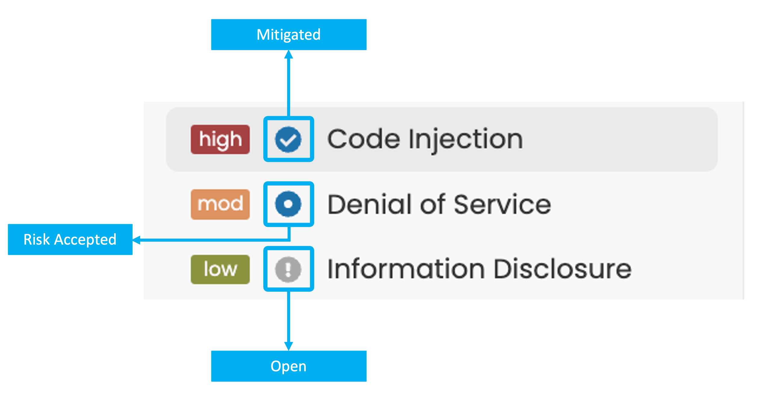 - Risk Accepted: The threat is considered still open, but remediation is not deemed necessary.