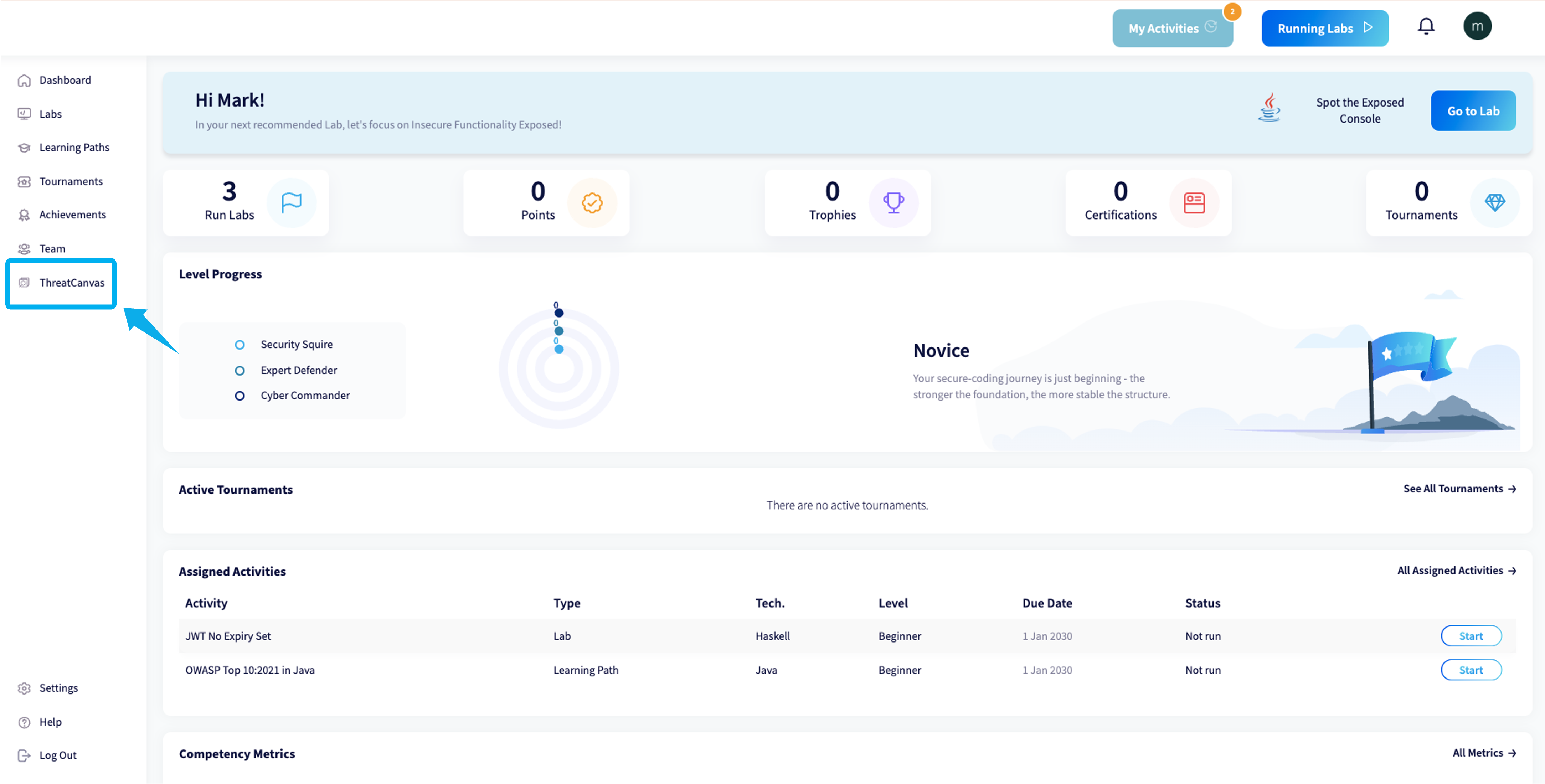 To access the tool, head to the user dashboard and click on ThreatCanvas in the left navigation menu.