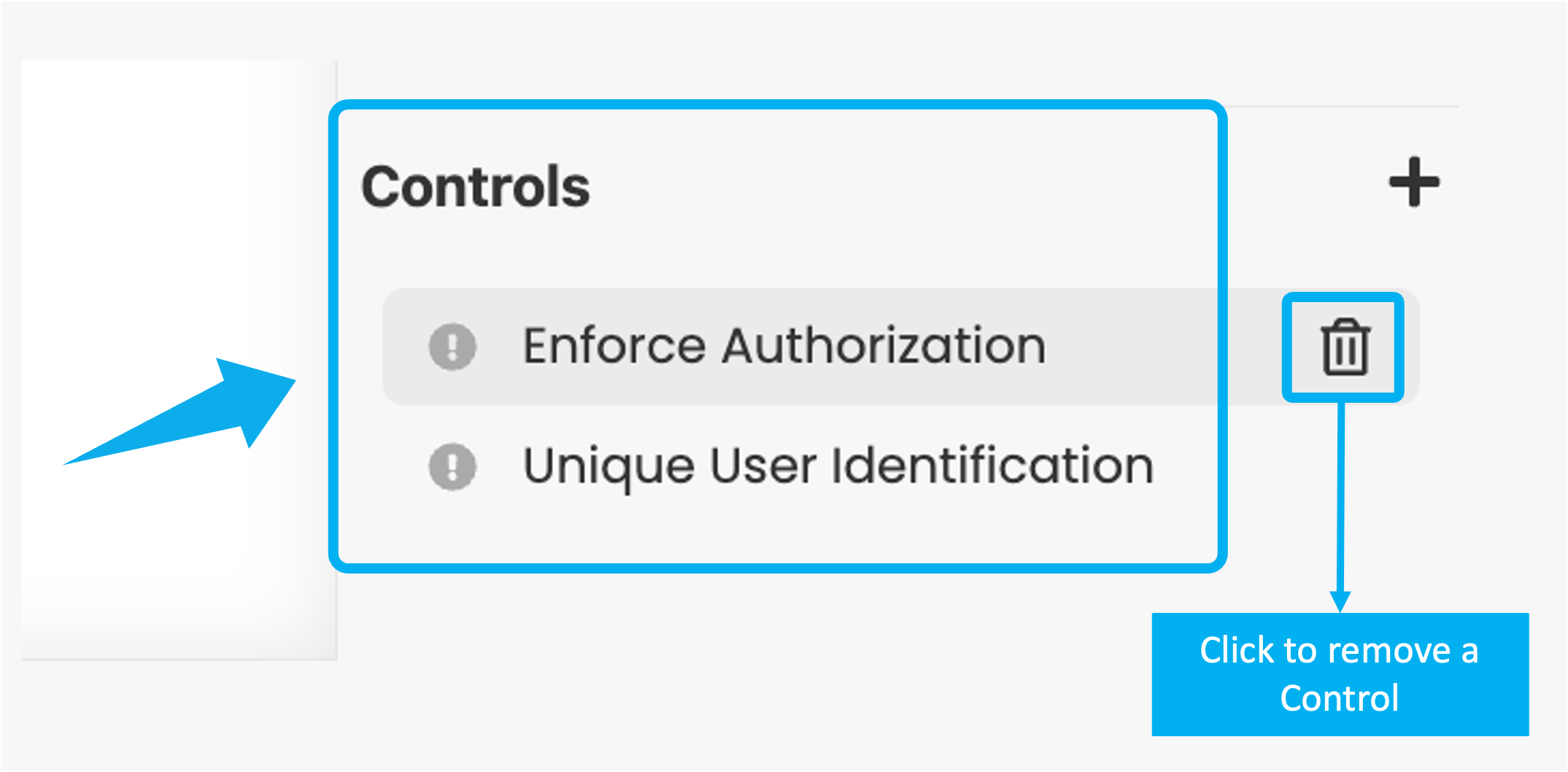 You can add additional Controls to the model by clicking the Plus (+) icon. Select a Control from the library based on the available Risk Templates. Alternatively, add a custom Control by giving it a name and clicking the '+' button.