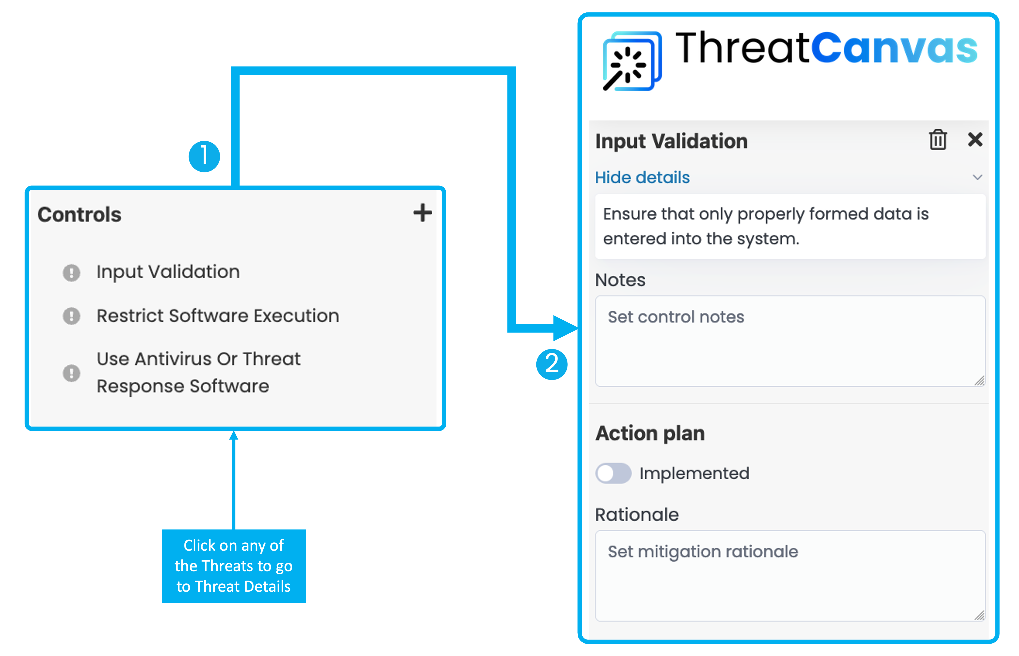 Similarly, within the Threat details, you can choose a Control from the list to navigate to the Control details.