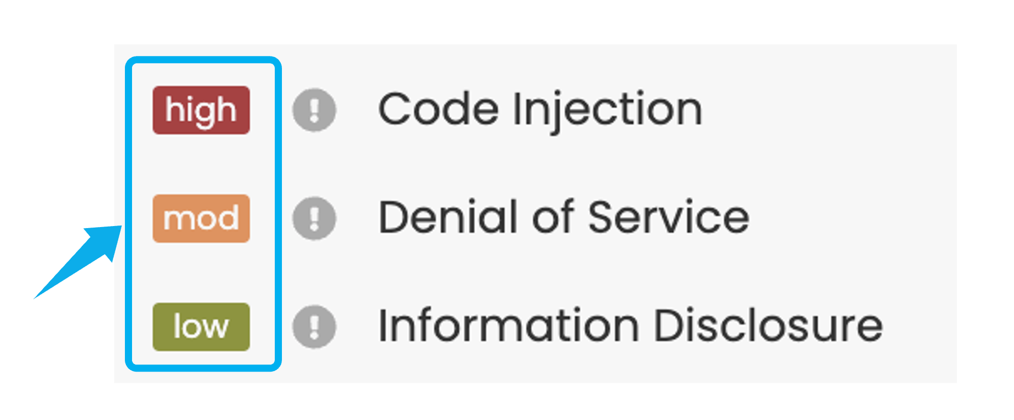 Risk Rating indicates the severity level of threats. You can rapidly change the Risk Rating by clicking on its label. Risk Ratings are represented using three distinct color codes: